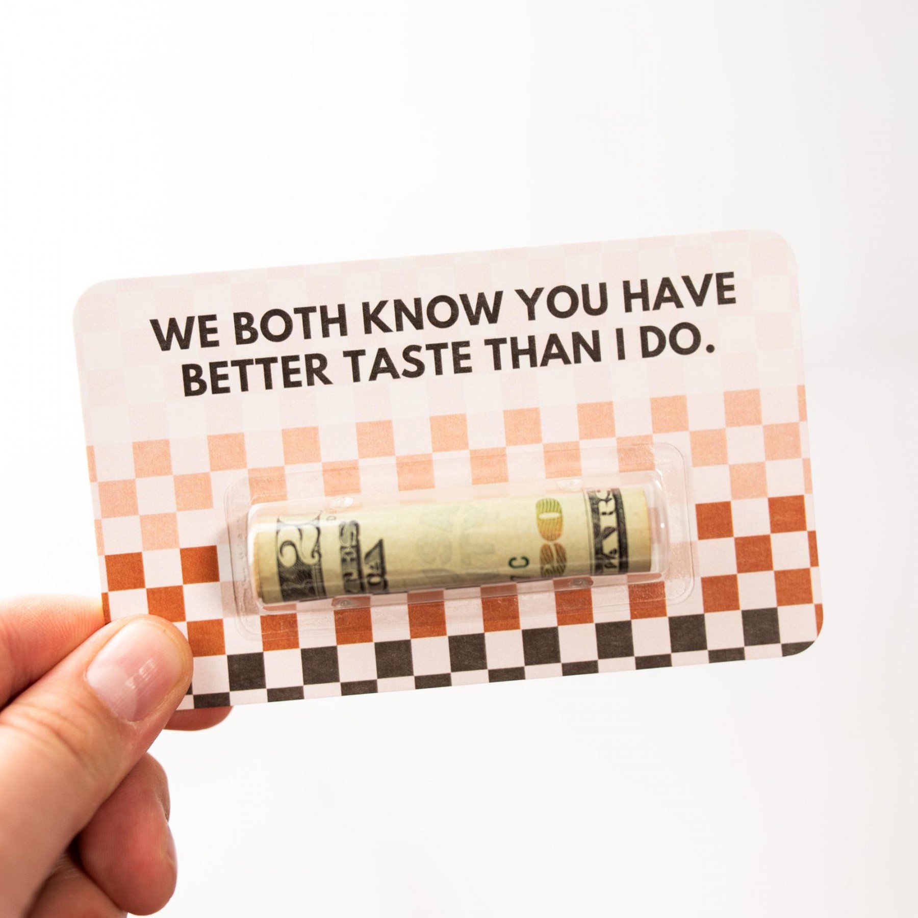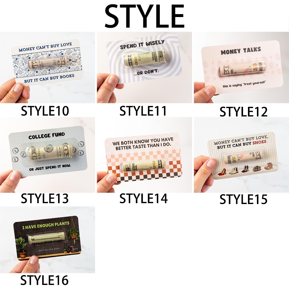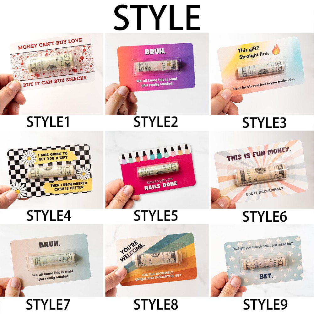 We ship the money gift cards to you, including the clear dome for bills and sticker adhesive. Just put your cash gift inside the money holder, remove the adhesive strips, and stick the clear dome on the money holder. They are quick, easy, and funny stocking stuffers!