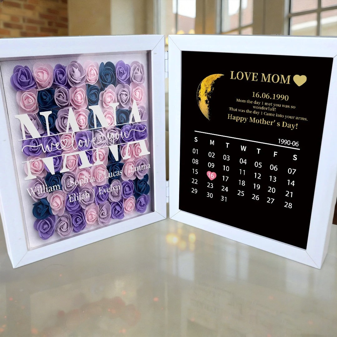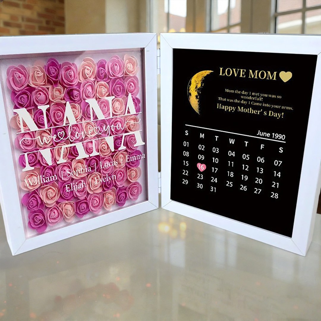 Custom Flowers Frame with Real Moon Phase For Mother's Day
