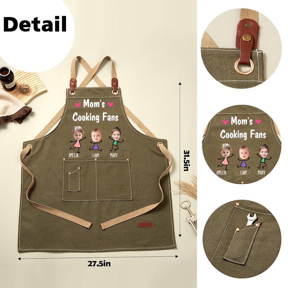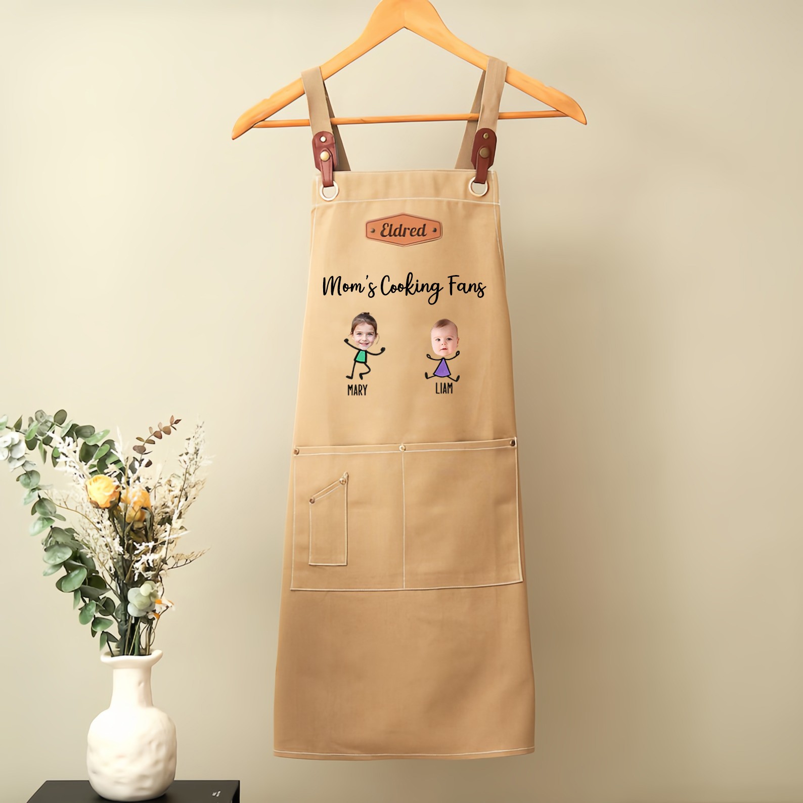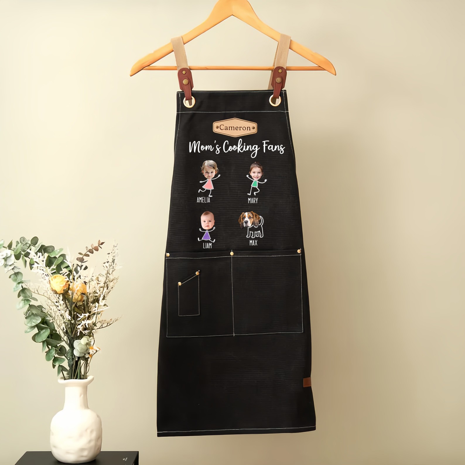 Custom Mom's Kitchen Crew Apron Featuring Kids Cartoon Mother's Day Gift