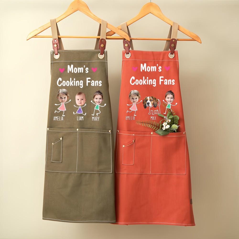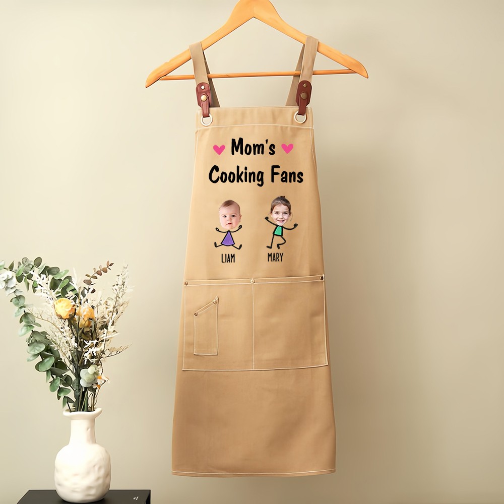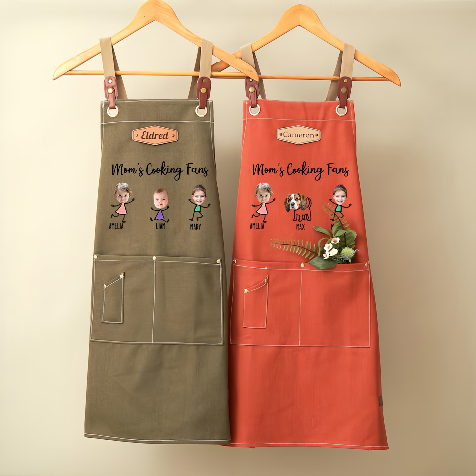 Custom Mom's Kitchen Crew Apron Featuring Kids Cartoon Mother's Day Gift