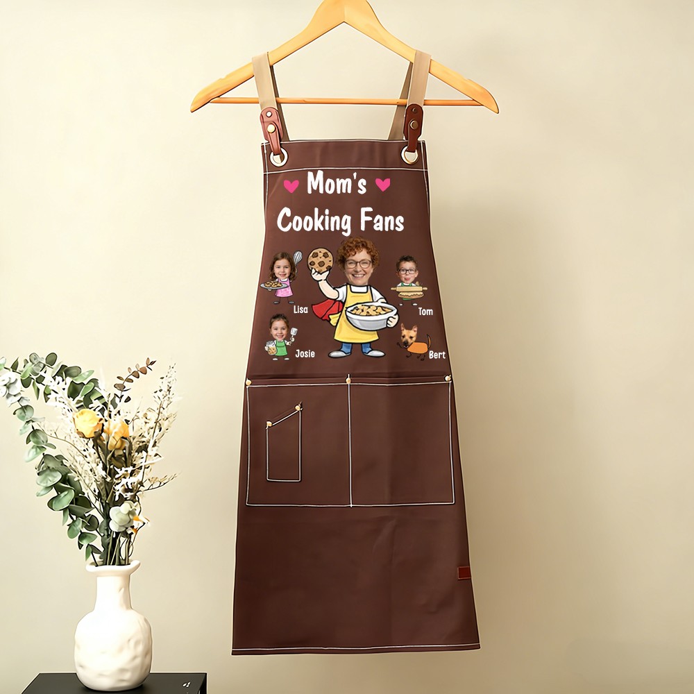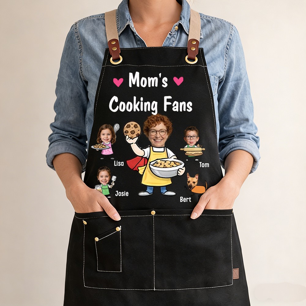 Custom Mom's Kitchen Crew Apron Featuring Kids Cartoon Mother's Day Gift