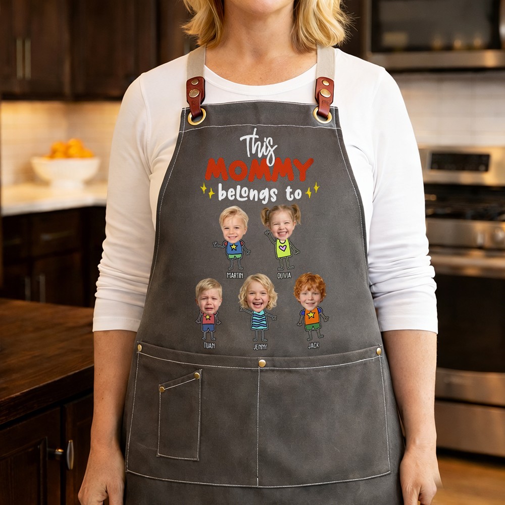 Custom Mom's Kitchen Crew Apron Featuring Kids Cartoon Mother's Day Gift