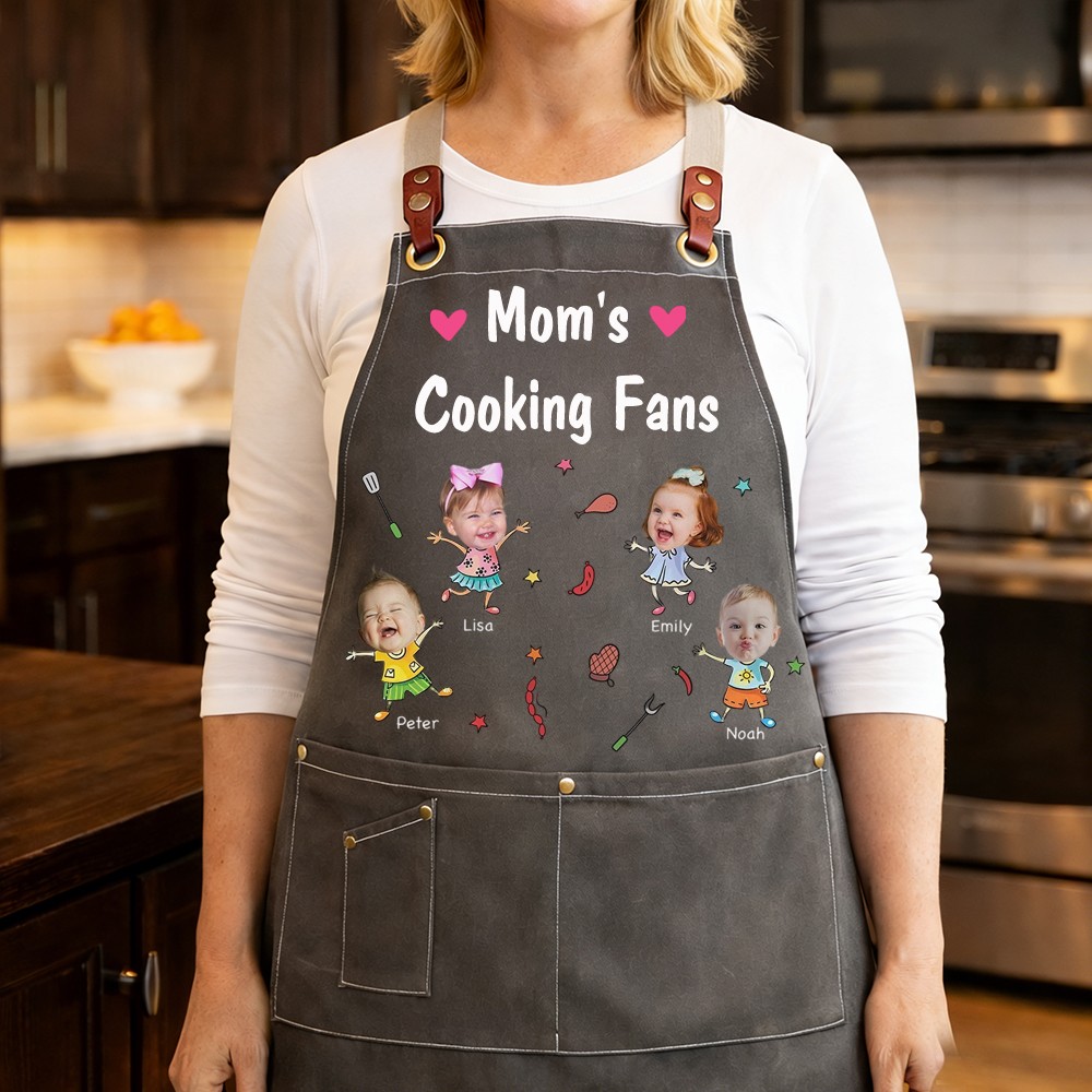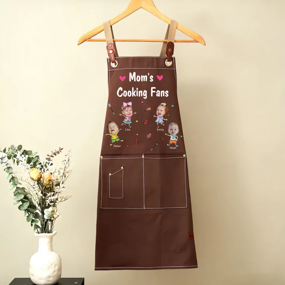 Custom Mom's Kitchen Crew Apron Featuring Kids Cartoon Mother's Day Gift