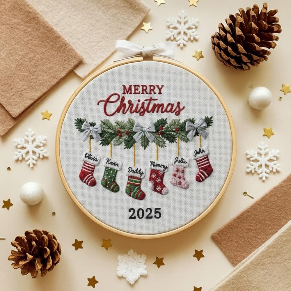 Celebrate your family this holiday season with a custom embroidered Christmas hoop ornament!  A beautiful keepsake for 2025 that makes the perfect Christmas gift.