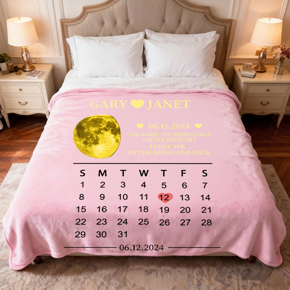 Celebrate love and precious memories with our unique Custom Moon Phase Blanket. This isn't just a blanket; it's a personalized piece of the night sky, capturing the exact moon phase from your most significant date.