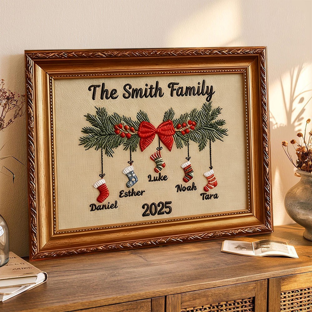 Personalized Embroidery Family Wood Frame Christmas Gift