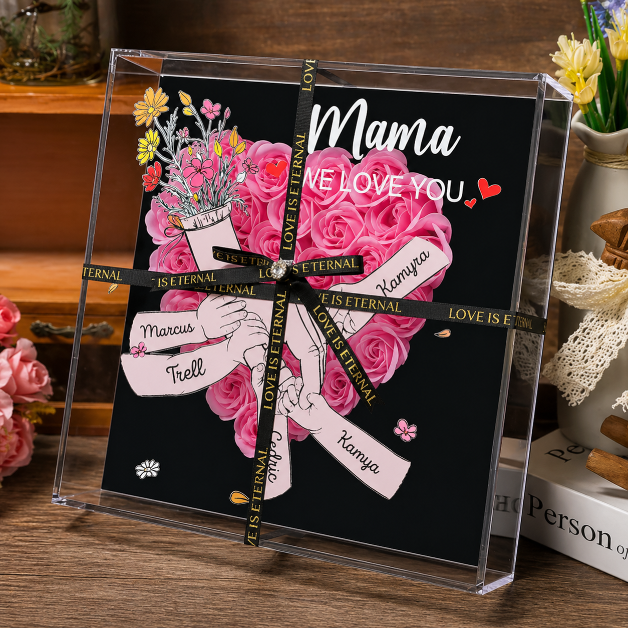 Capture the eternal love of family for grandma or mom with this beautifully customized shadow box. This one-of-a-kind keepsake combines warm hand illustrations with a romantic rose background, making it the perfect way to express affection and gratitude.