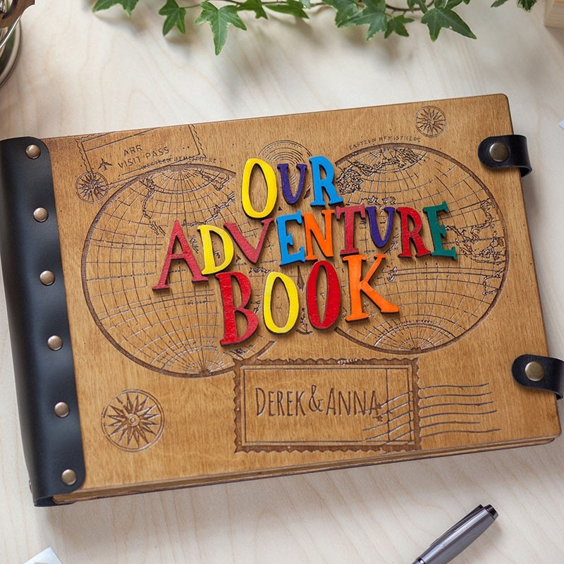 Personalized Our Adventure Book Wooden Travel Photo Album Valentine's Day Wedding Anniversary Gift for Couple