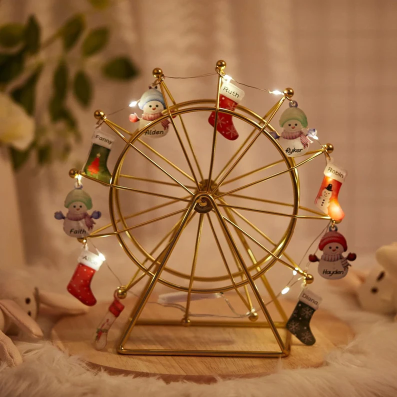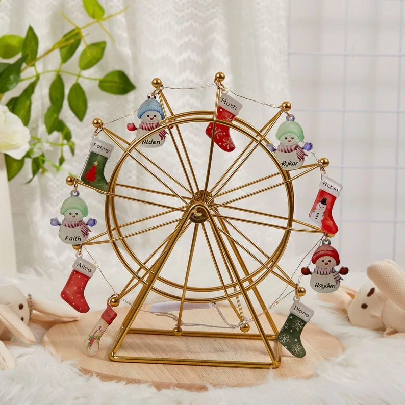 Decorative Ferris wheel are the eternal holiday decorations you must have! This Ferris wheel will glow, illuminating any room in your home in a matter of seconds.Customize your child, wife, husband, friend names or whatever you want.