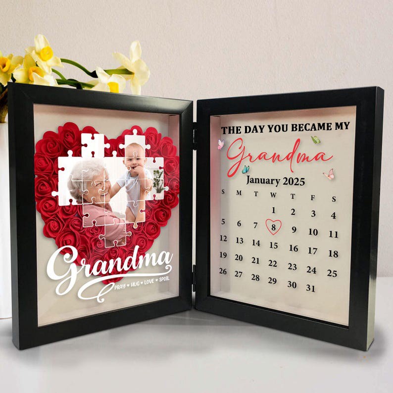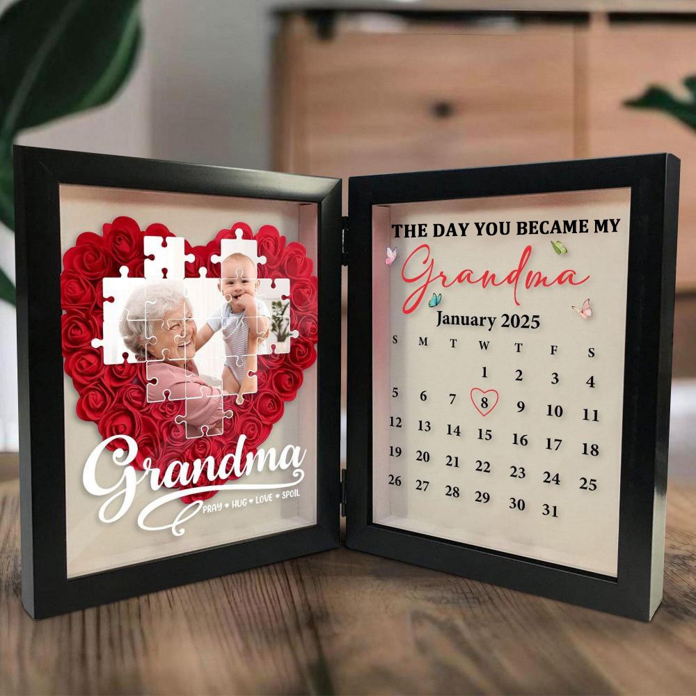 Personalized The Day You Became My Grandma Flowers Shadow Box Frame