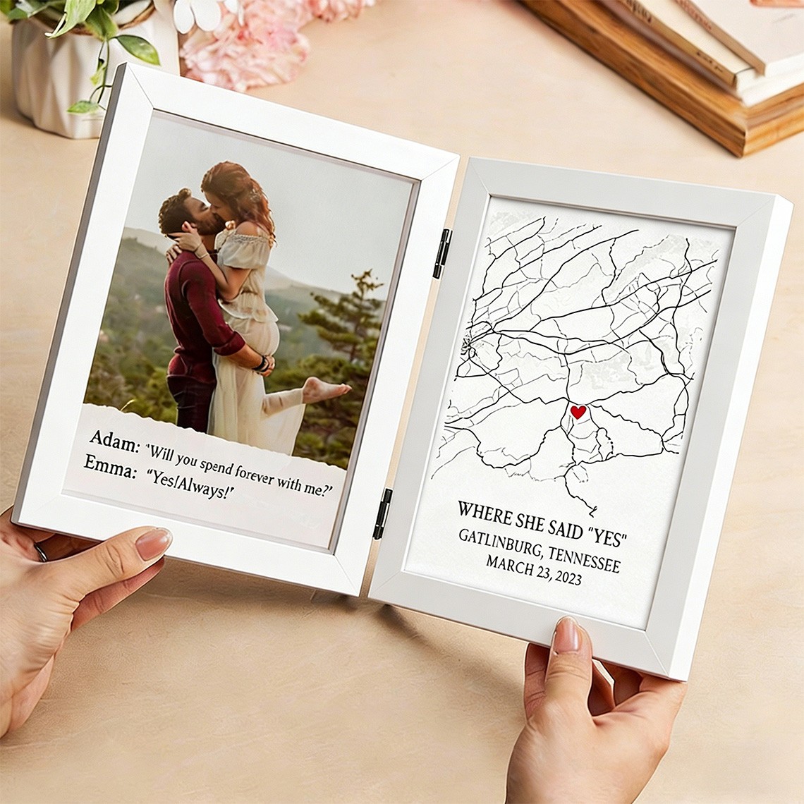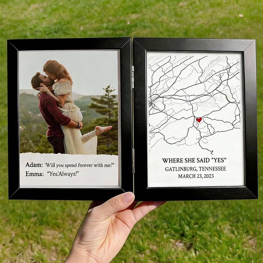 Personalized Where She Said Yes Map Frame Keepsake Gift for Couple